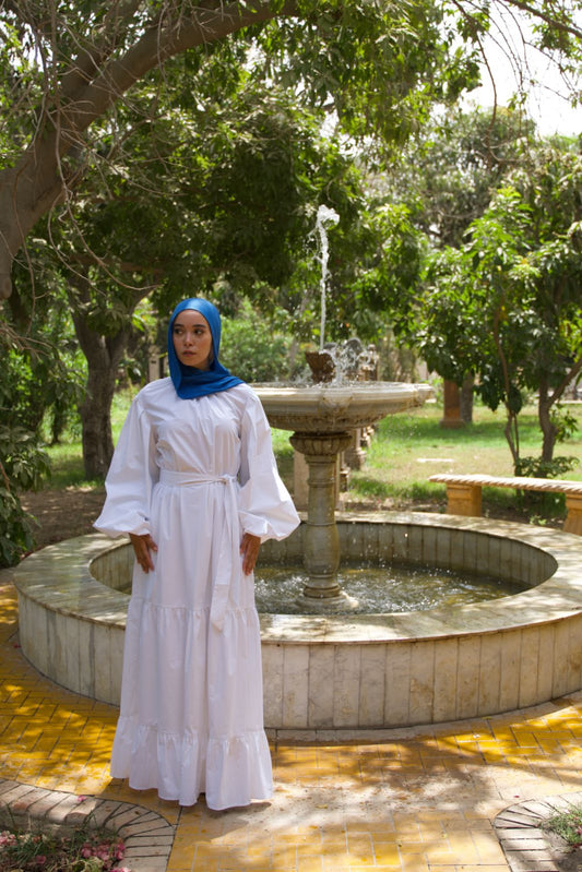 White Poplin Balloon Dress